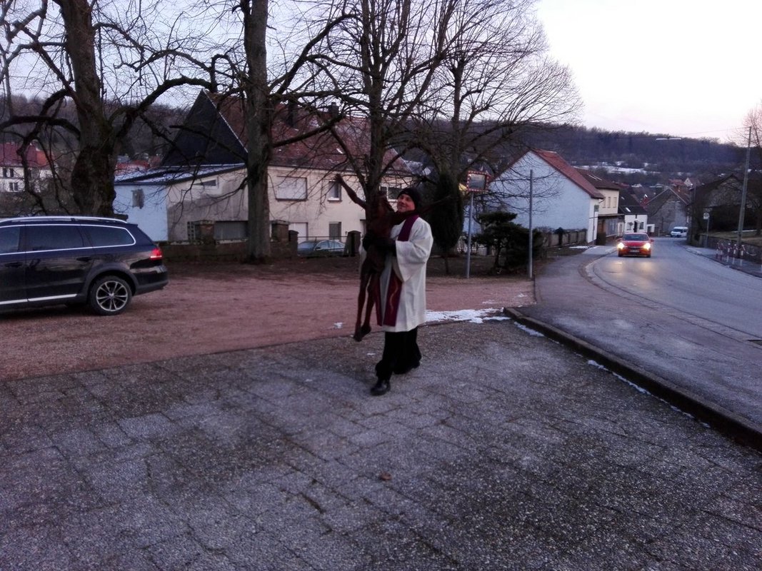 Gemeindemitglieder aus Blickweiler, Wecklingen und Ballweiler sind mit dem Corpus Christi unterwegs von St. Barbara nach St. Josef.