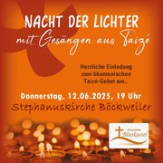 Herzliche Einladung zum ökumenischen Taizé-Gebet am Donnerstag, dem 12. Juni 2025, um 19 Uhr, in der Stephanuskirche in Böckweiler. Wir freuen uns über die Beliebtheit der Taizé-Andachten in unserer Region. Es ergeht eine... weiterlesen