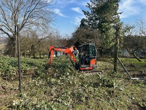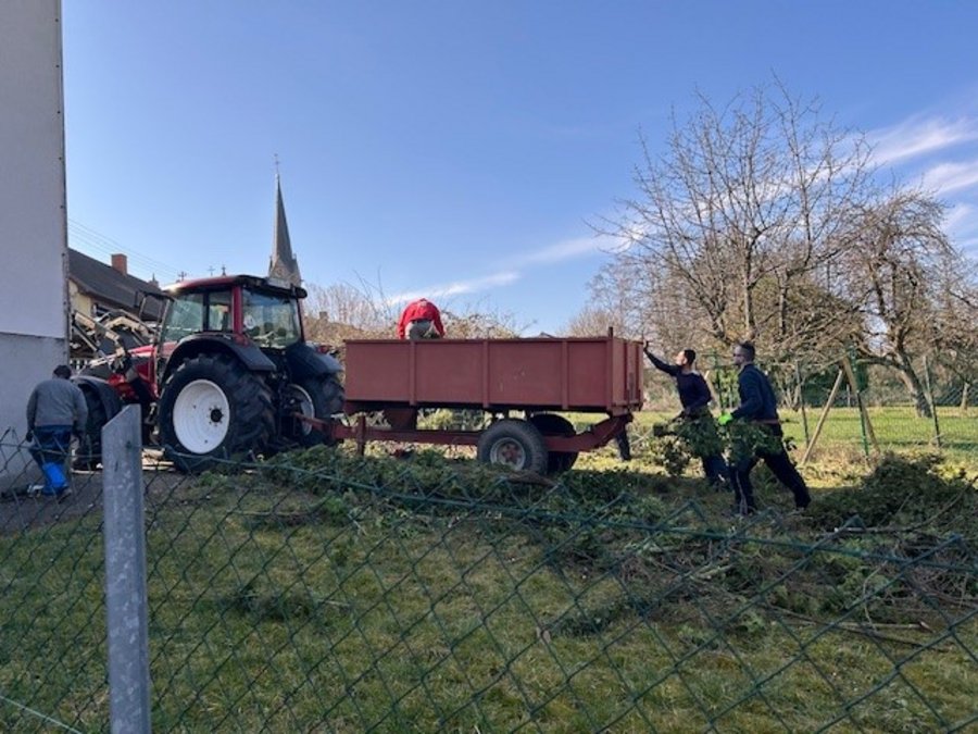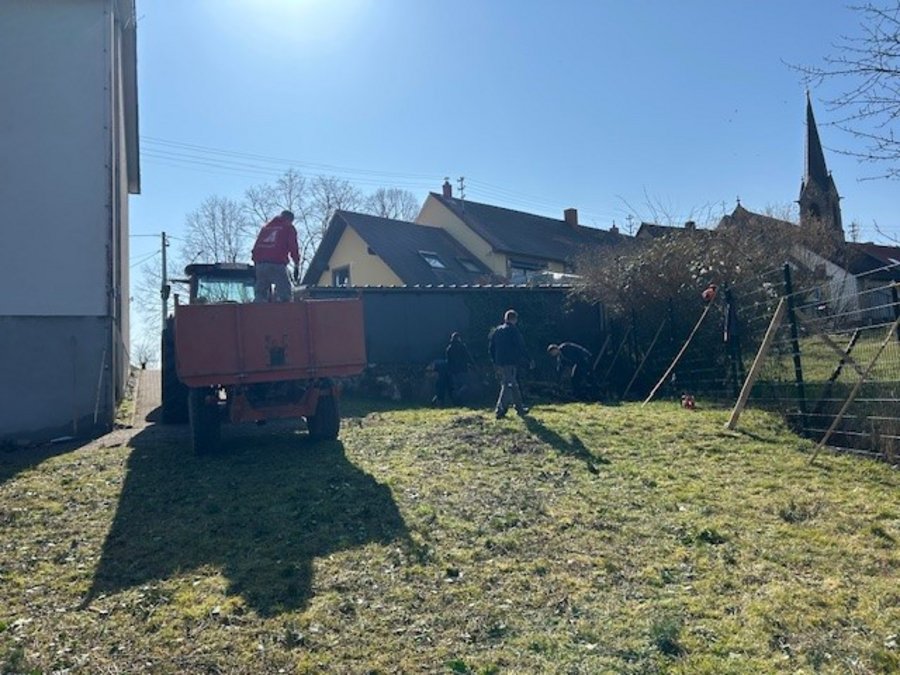 Am Samstag haben viele fleißige Helferinnen und Helfer zusammengearbeitet, um unseren Biosphärengarten weiter voranzubringen! Mit schwerem Gerät wurde kräftig angepackt: Ein Bagger entfernte Wurzeln und Wildbeerensträucher, während ein Traktor das Material zum Heckenplatz transportierte. Zudem wurden erste Bäume gefällt und mit dem Aufbau des neuen Zauns begonnen.