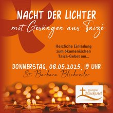 Herzliche Einladung zum zweiten ökumenischen Taizé-Gebet am Donnerstag, dem 8. Mai 2025, um 19 Uhr, in St. Barbara Blickweiler.