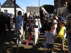 Die Kinder der Kita Mariä Himmelfahrt mit einem kleinen Tanz mit Tüchern.