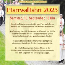 Herzliche Einladung zur diesjährigen Pfarrwallfahrt im Rahmen der Wallfahrtswoche des Klosters Blieskastel.