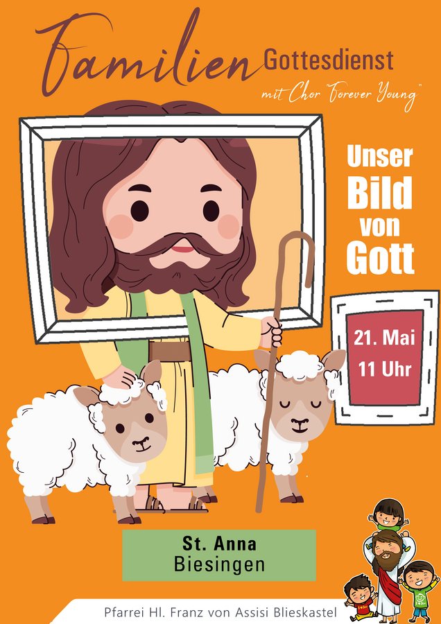 Am Sonntag, dem 21. Mai, um 11 Uhr, laden wir herzlich zum Familiengottesdienst nach St. Anna Biesingen ein. Der Gottesdienst wir vom Chor "Forever Young" musikalisch begleitet.