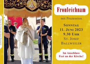 Ballweiler, 9.30 Uhr, Heilige Messe zu Fronleichnam mit großer Prozession durchs Dorf und anschließendem Fest an der Kirche