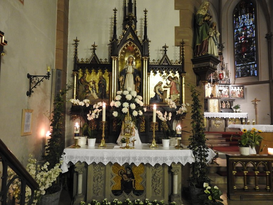 Seit dem 1. Oktober – und noch bis zum 31. Oktober – betet eine Gruppe von etwa 30 Gläubigen jeden Morgen den Rosenkranz vor dem ausgesetzten Allerheiligsten am Marienaltar in Biesingen von 8.00 Uhr – 8.30 Uhr. Jeder und jede ist sehr herzlich eingeladen den Rosenmorgen in Biesingen zu besuchen und gemeinsam mit anderen Christen in den Anliegen unserer Pfarrei und in persönlichen Anliegen zu beten.