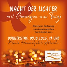 Herzliche Einladung zum unserem ökumenischen Taizégebet am 9. Oktober um 19 Uhr in Mariä Himmelfahrt Aßweiler.