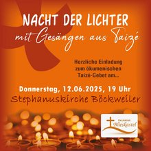 Herzliche Einladung zum ökumenischen Taizé-Gebet am Donnerstag, dem 12. Juni 2025, um 19 Uhr, in der Stephanuskirche in Böckweiler.
