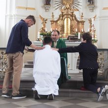 Unsere Gemeinde freut sich sehr über die Erwachsenentaufe von Herrn Helmut Bieg am vergangenen Sonntag in der Schlosskirche. Der Taufname von Herrn Bieg ist Isaak. Neben der Taufe wurde Herr Bieg auch gefirmt und konnte zudem das Sakrament der Eucharistie zum ersten Mal empfangen. Eine große Freude für alle, die am Sonntag in der Heiligen Messe in der Schlosskirche waren!