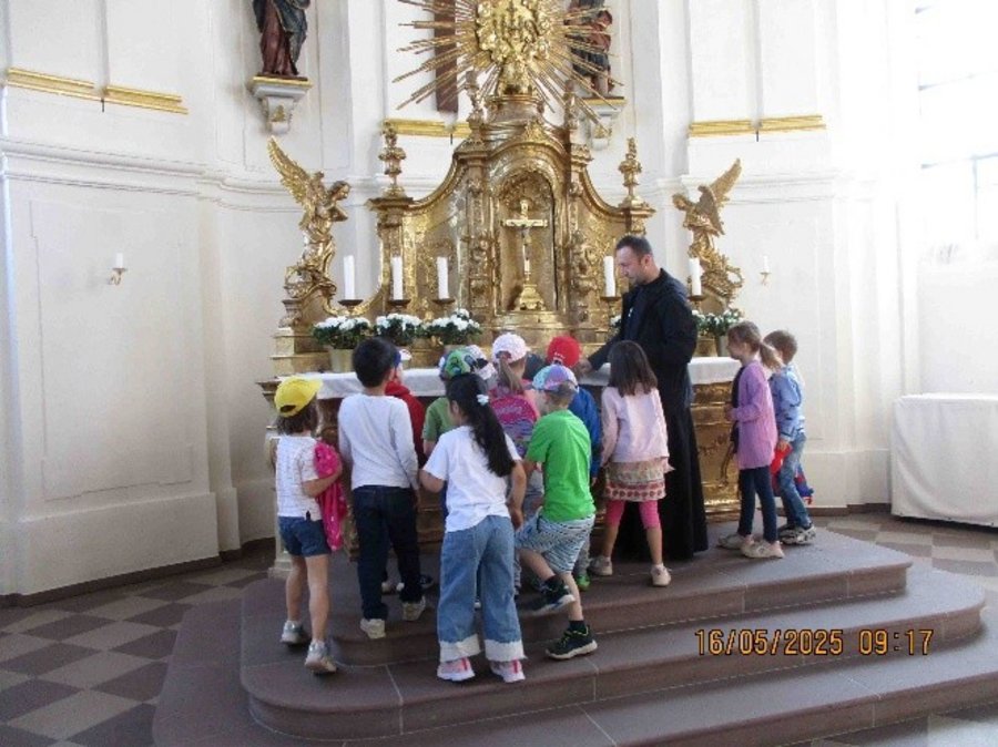 Danach ging es auf einem richtig schmalen, abenteuerlichen Weg weiter zum Wallfahrtskloster. Der Weg war ein bisschen wie ein kleiner Dschungelpfad, total spannend! Im Kloster durften wir sogar in die kleine Kapelle hinein und – das war richtig besonders – wir durften uns ins Pilgerbuch eintragen. Jetzt stehen unsere Namen da drin – wie bei richtigen Pilgern.
